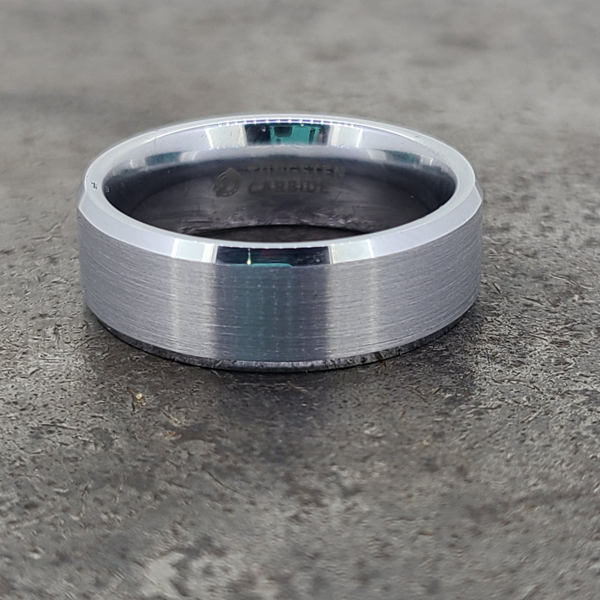 Tungsten beveled ring with brushed center finger size 11.5 with 6mm, 8mm, and 10mm options.