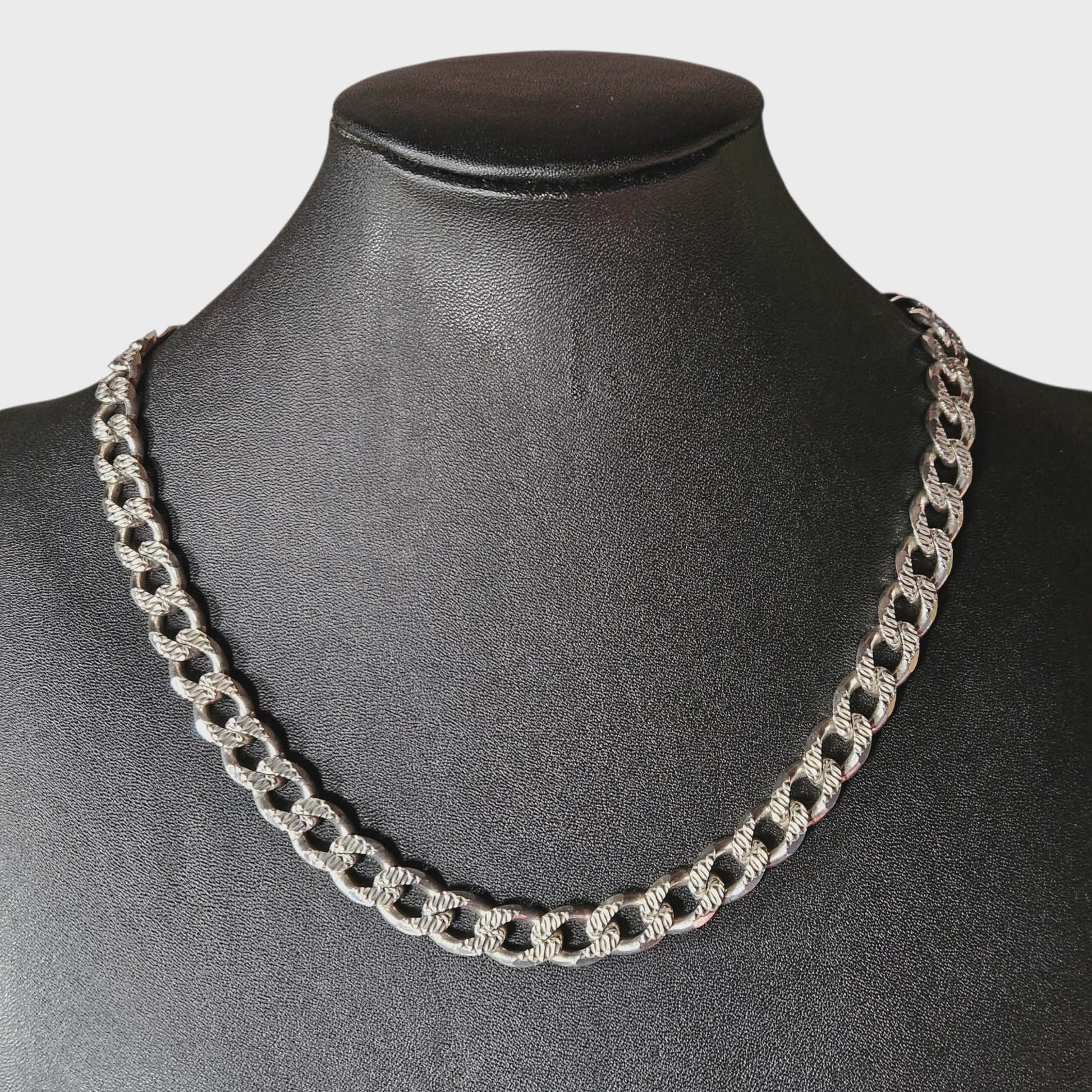 Sterling silver men's chain crafted to substantial specifications. This 20-inch piece features a 10mm width, delivering the presence and durability serious collectors expect. At approximately 79 grams, the weight reflects genuine sterling silver construction—a hallmark of quality that ensures longevity and authentic value.