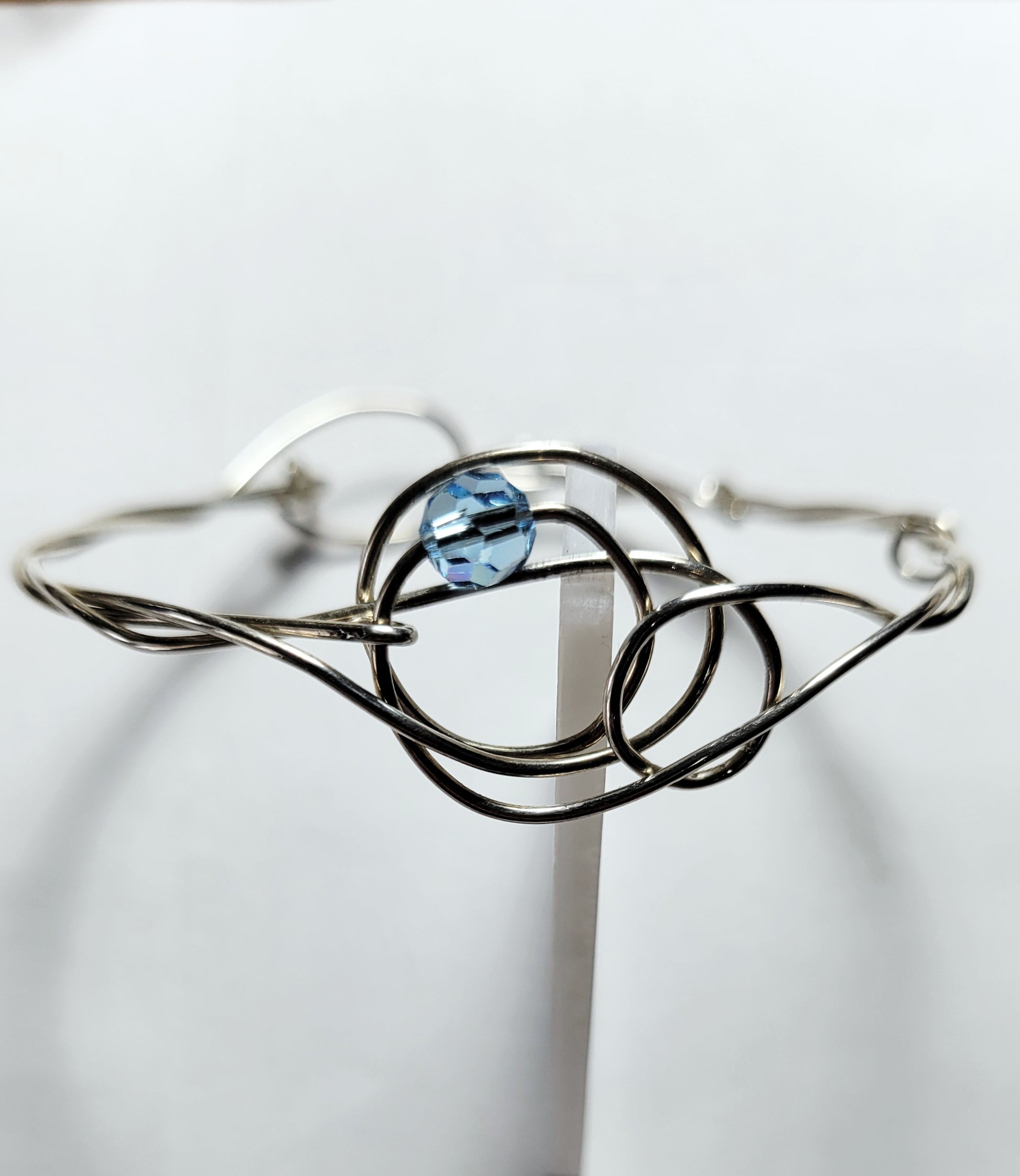 Sterling Silver handmade bangle bracelet with light blue Swarovski crystal bead